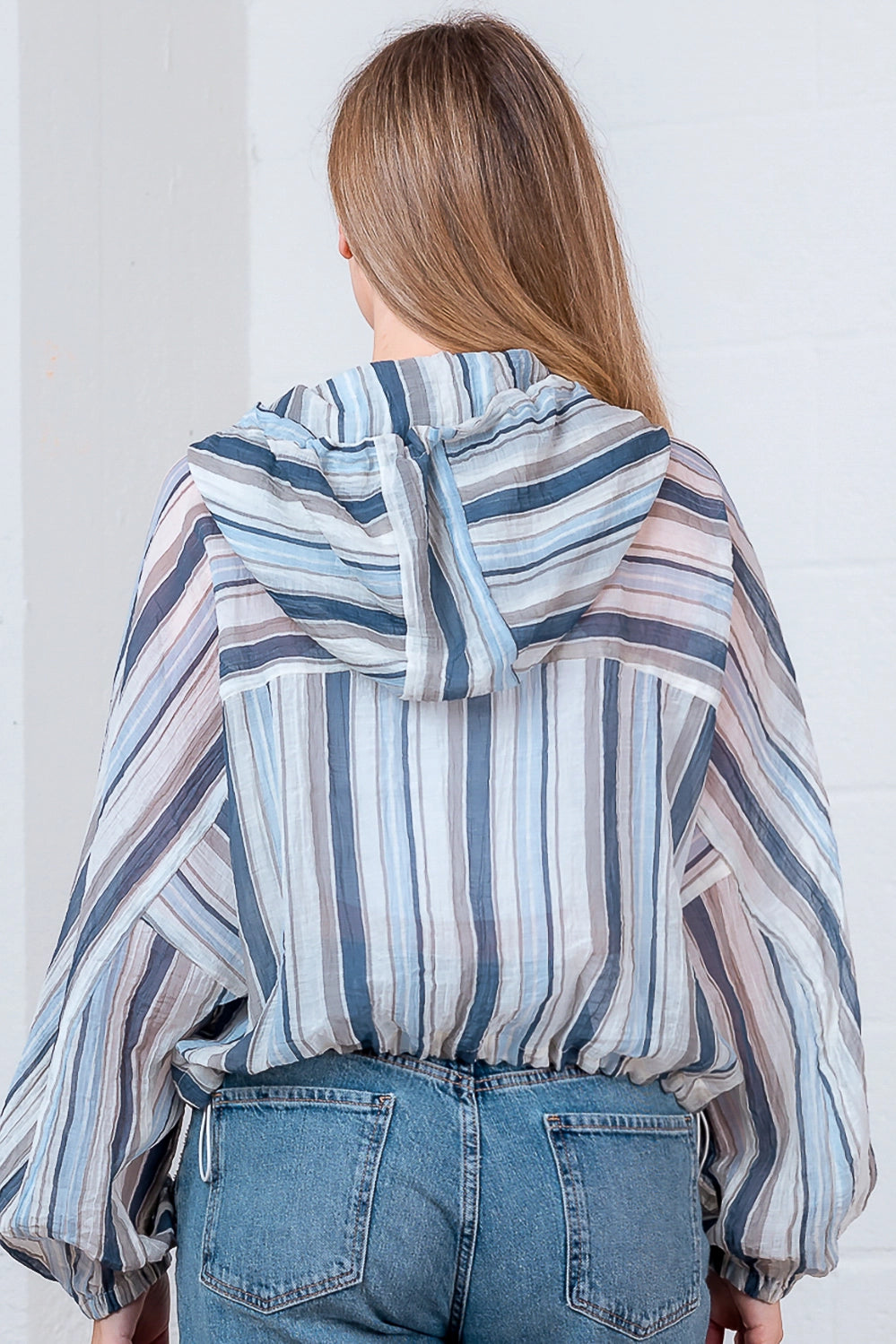 Stripe hooded shirt jacket