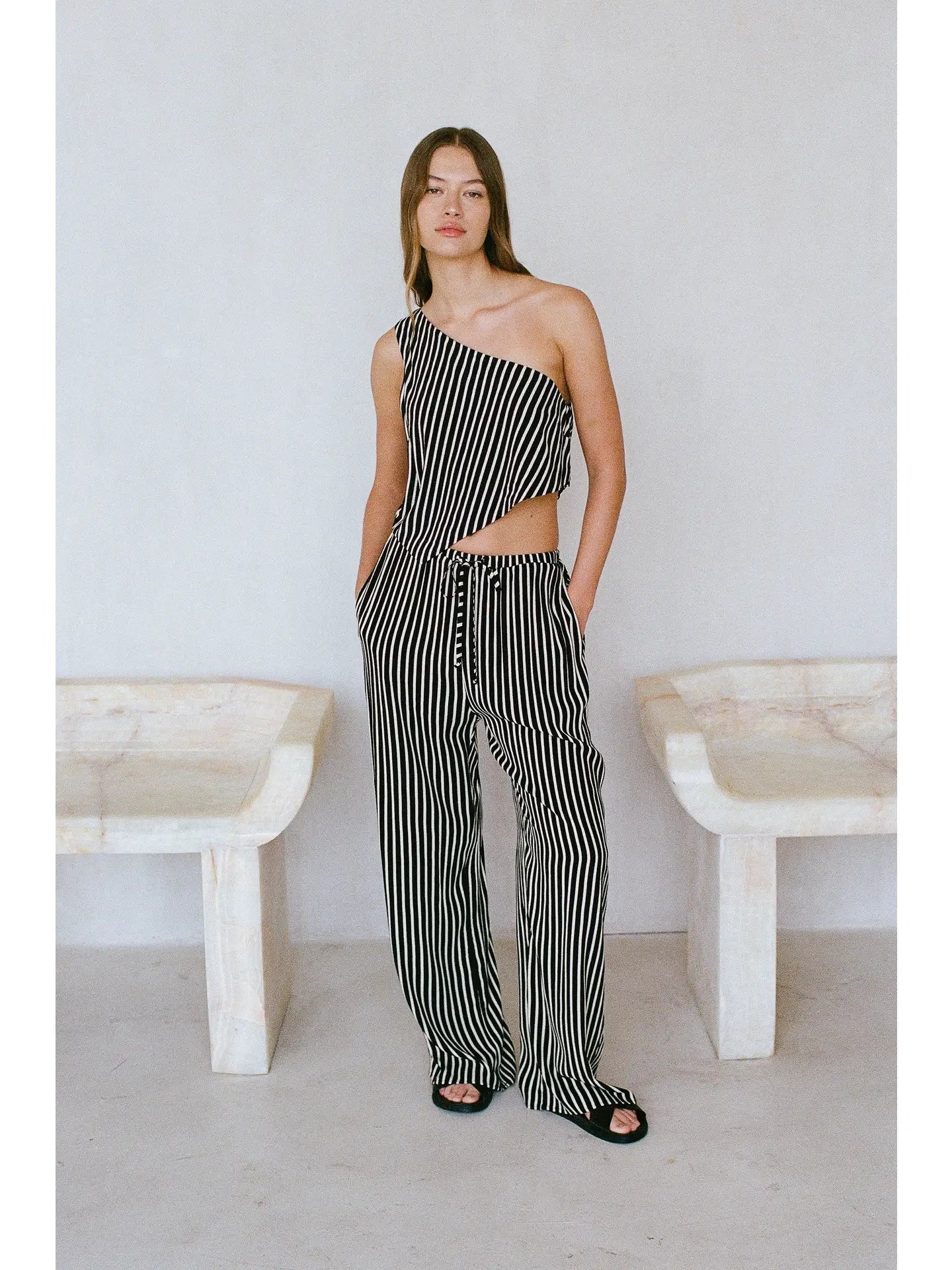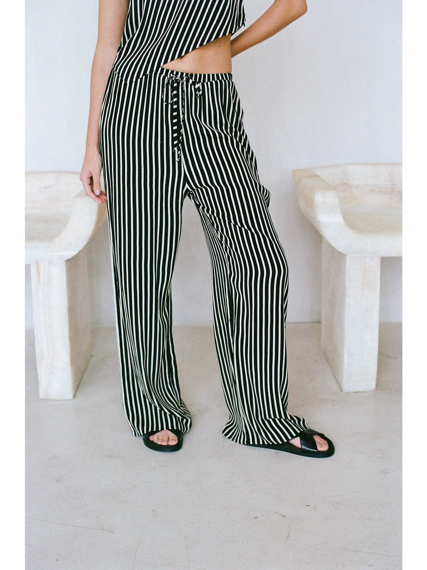 Rayon Striped Wide Leg Pants