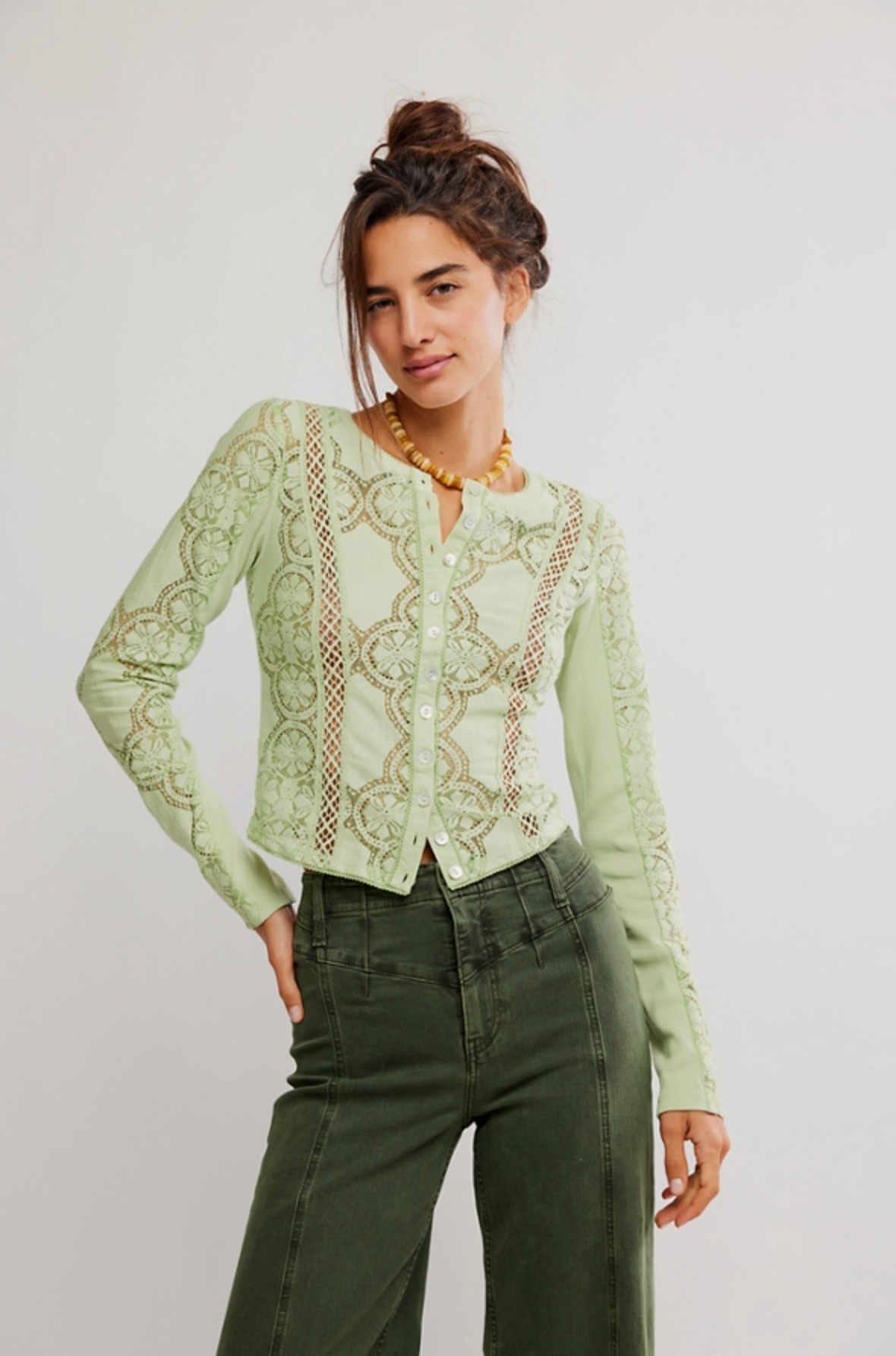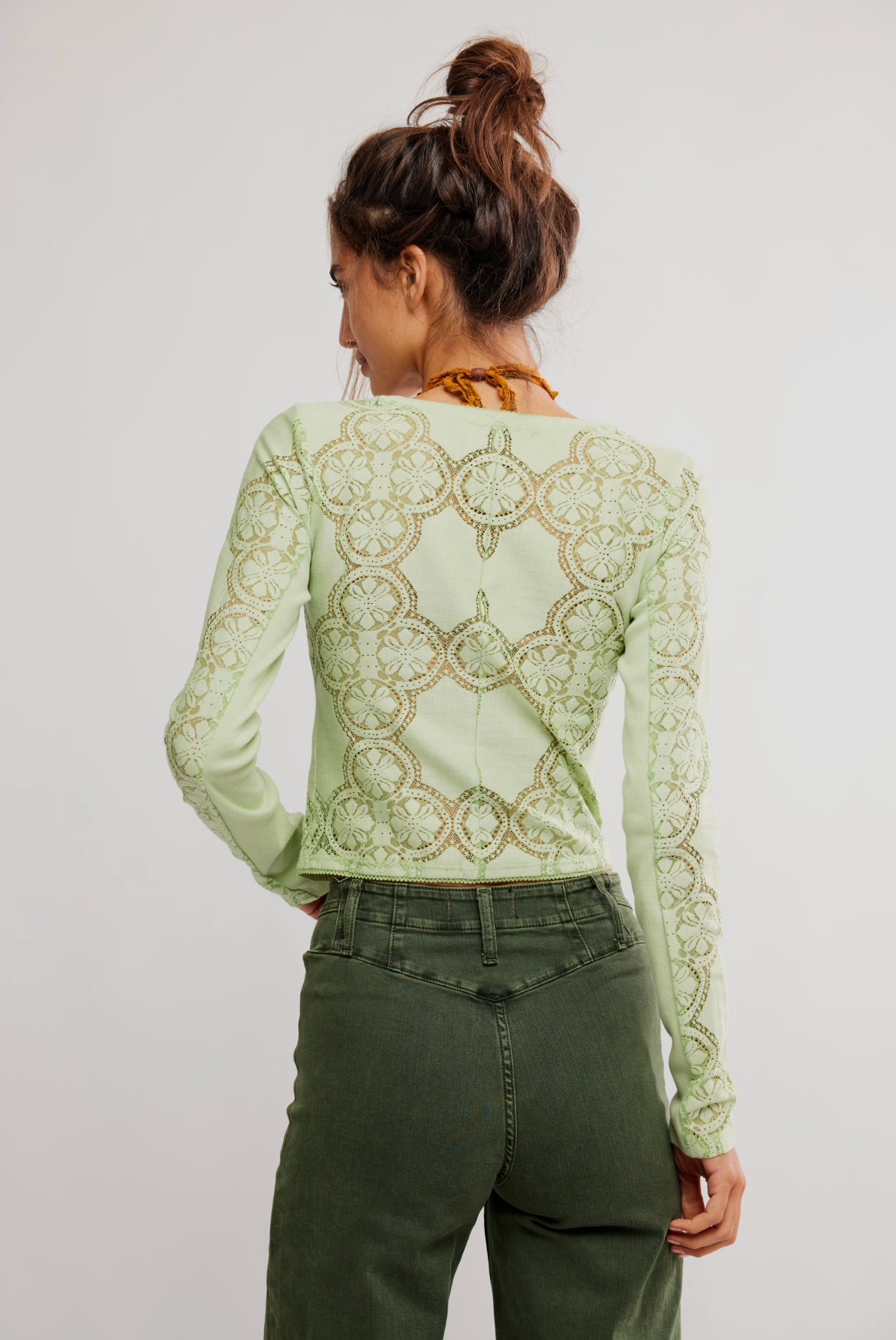Jae Sheer Lace Knit Long Sleeve Top