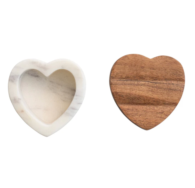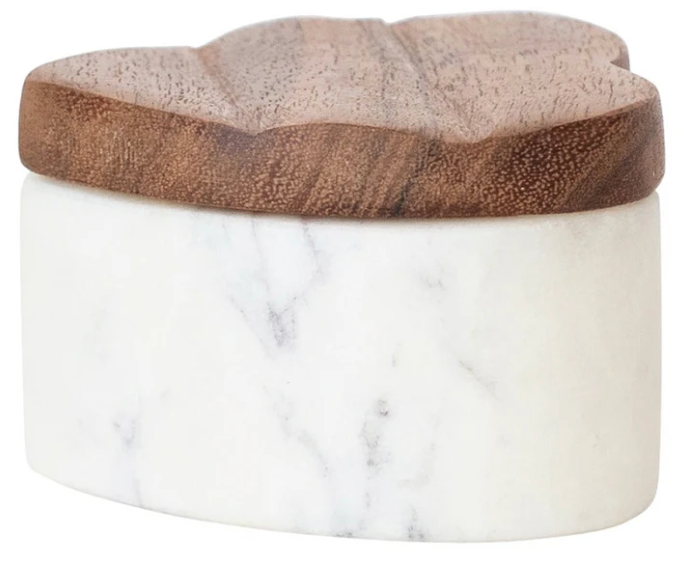 Marble Heart Shaped Container w/ Acacia Wood Lid
