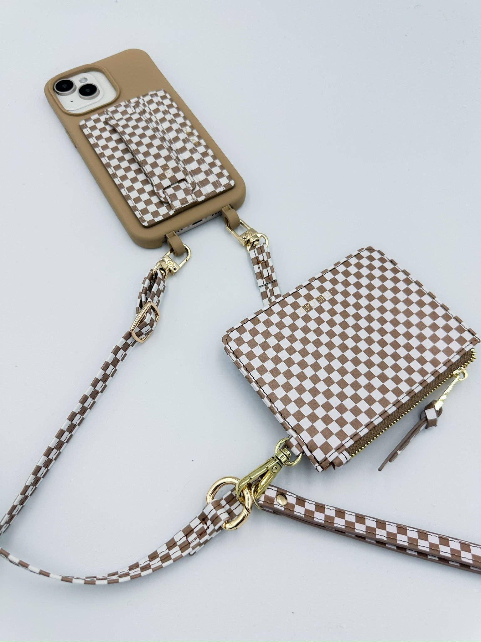 Tan Checkered Hoop Phone Wallet