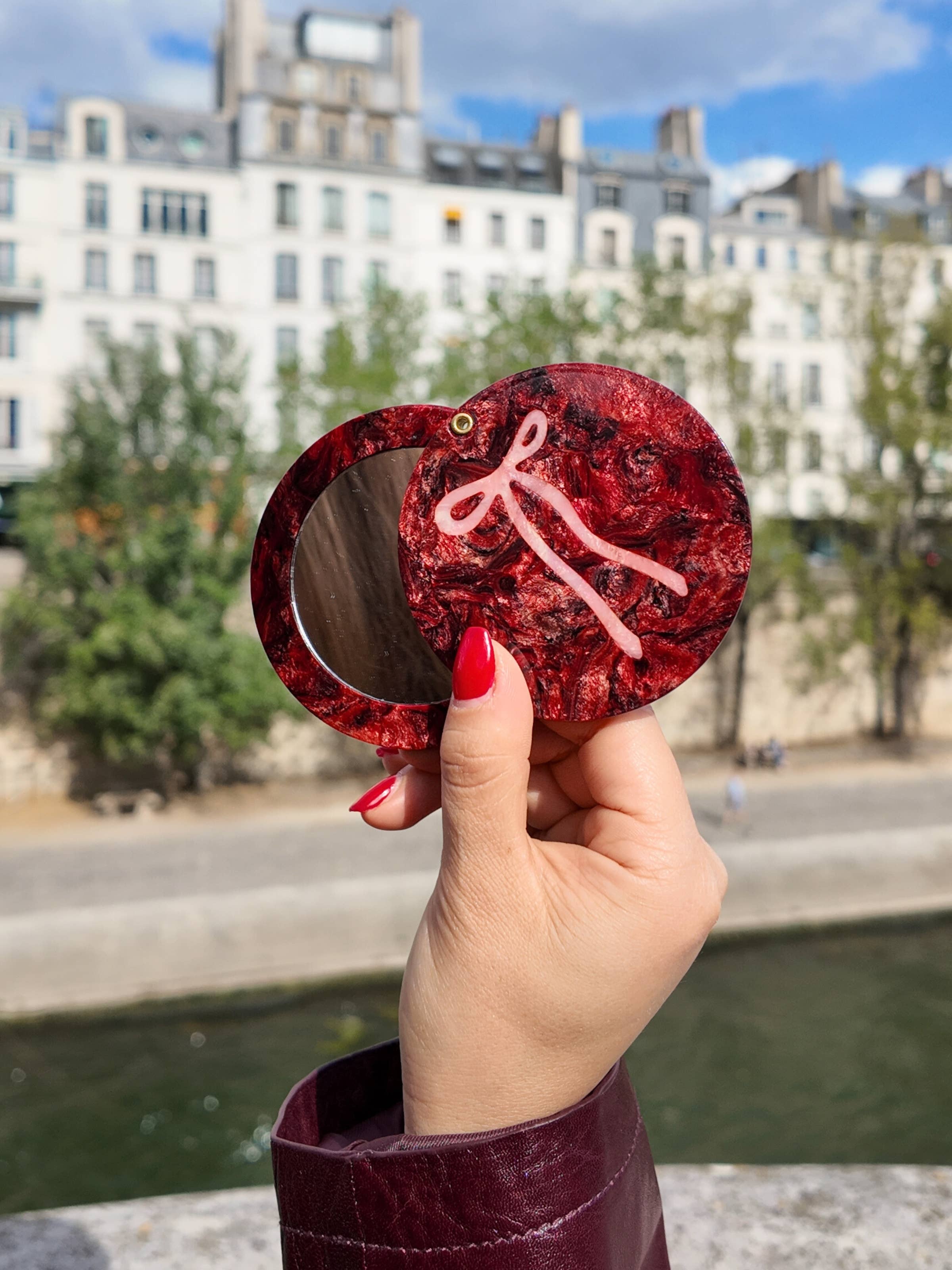 Hand-painted Vintage Bow Compact Mirror | Eco-Friendly